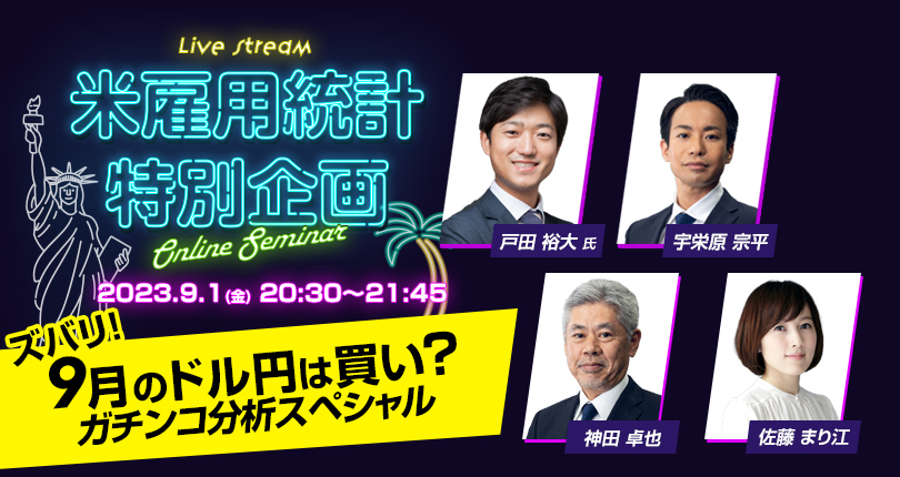 外為どっとコムでは、為替業界のみならず全てのマーケット関係者が注目する経済指標「米国雇用統計」を解説する無料オンラインセミナーを配信いたします。
