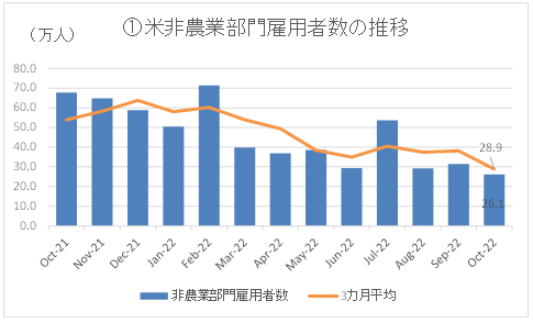 米労働省が2022年11月4日に発表した10月雇用統計の主な結果は、①非農業部門雇用者数26.1万人増、②失業率3.7%、③平均時給32.58ドル(前月比+0.4%、前年比+4.7%)という内容であった。
