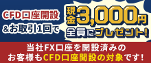 CFD口座開設&お取引1回でもれなく3,000円プレゼント!キャンペーン