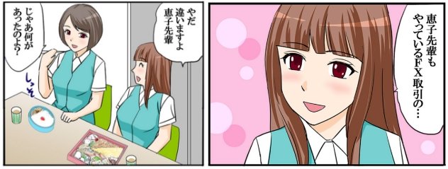 いつものお昼、後輩社員百合子さんのお弁当が豪華なことに気づいた恵子先輩。なんと、最近取引していなかったFXでバイナリーオプションを始めたらしい。さっそく仕組みを教えてもらうことに……。