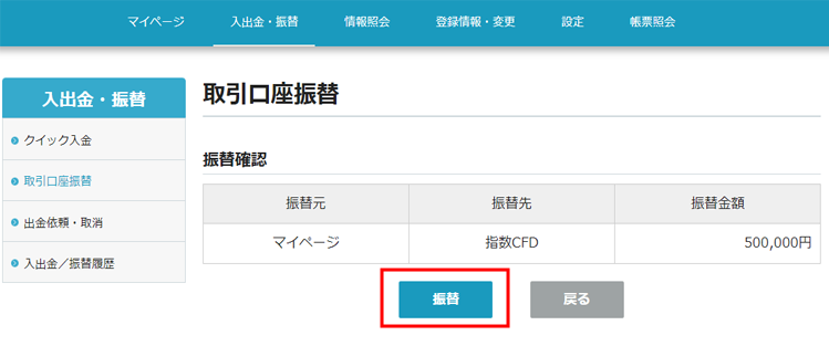 入力内容に相違がないことを確認した後「振替」をクリックします。