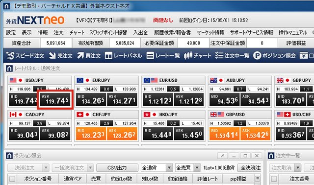 「レートパネル」から注文したいレートをクリックして注文ができます。