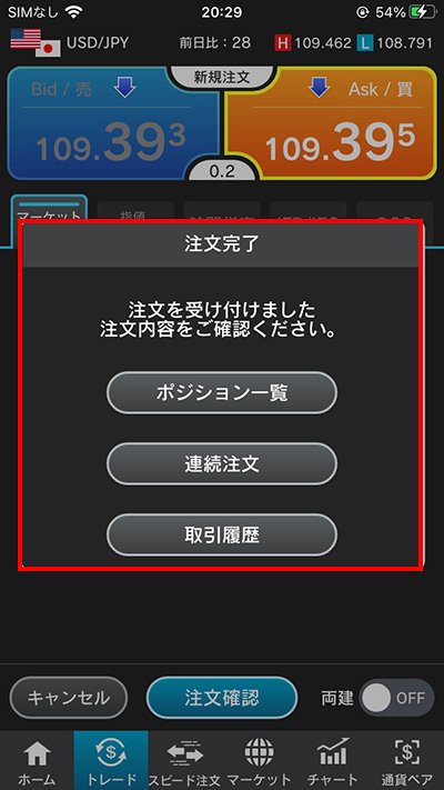 注文内容を確認後、「注文実行」をタップします。
