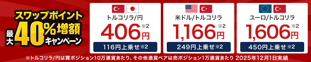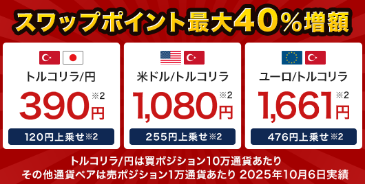 - スワップポイントは各国の金利情勢により、日々変動いたします。