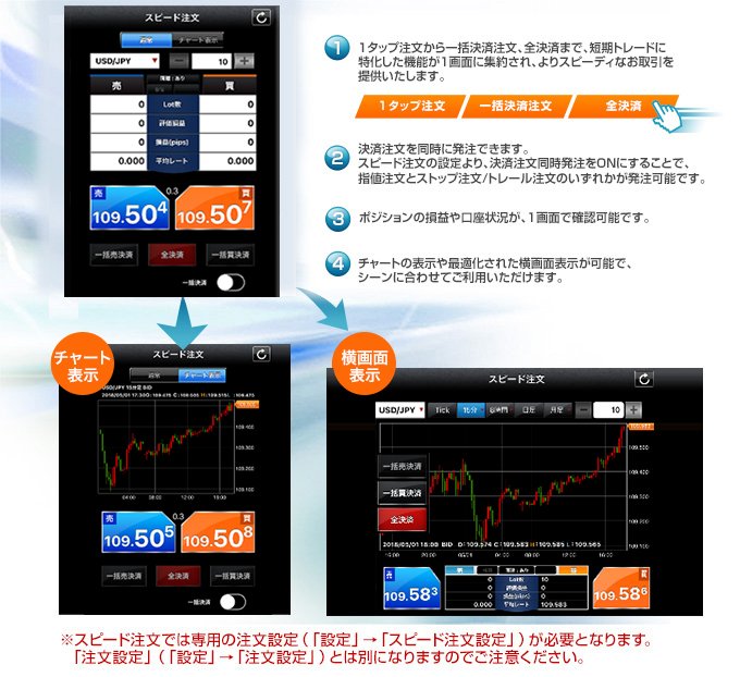 特長1. 短期トレードに最適「スピード注文」