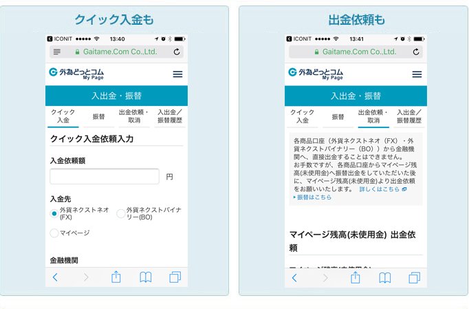 iPadからクイック入金、出金依頼を行うことができます。スピーディーな入出金で取引チャンスを逃しません。