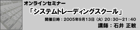 | オンラインセミナー・石井正敏「システムトレーディングスクール」 |