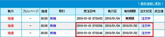 2010年1月1日午前7時〜翌2日午前6時40分までの間に指値・ストップ注文をだされた注文について